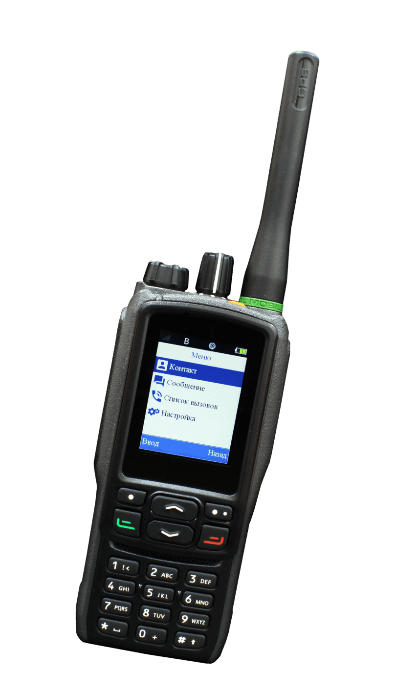 Степень защиты IP67. Терминал поддержи-вает как аналоговый, так и цифровой режим. В качестве опций предлагаются встроенные GPS/ГЛОНАСС- приемник и модуль Bluetooth. Батарея высокой емкости обеспечивает до 15 часов непрерывной работы в цифровом режим